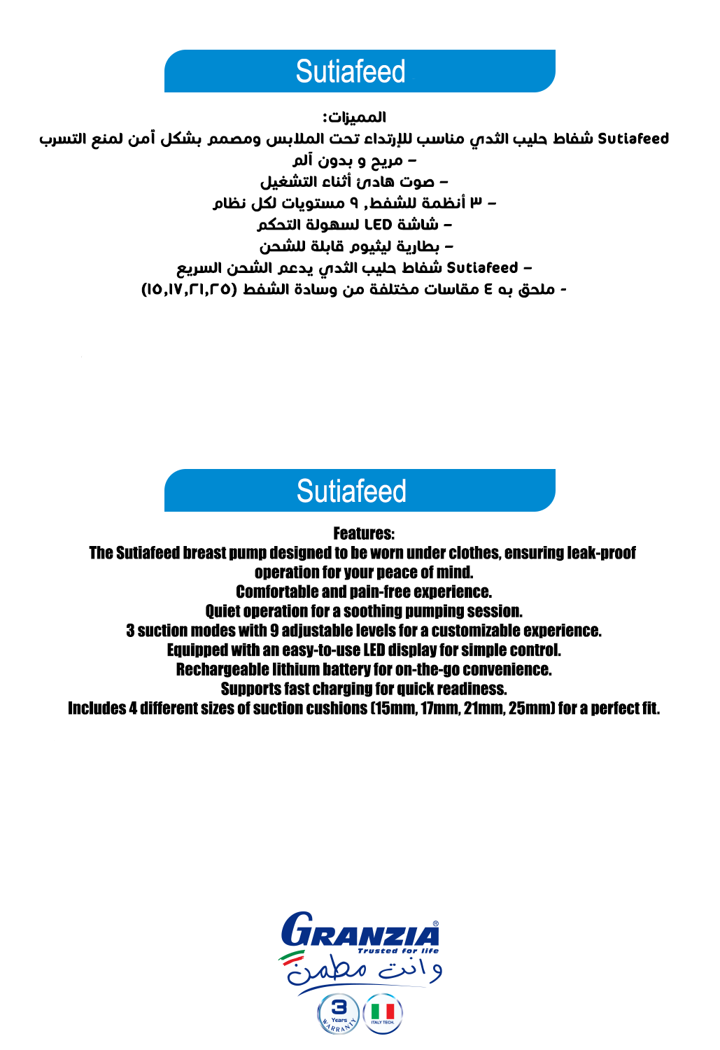 شفاط حليب الثدي الكهربائي ( قابل للارتداء ) GRANZIA SutiaFeed