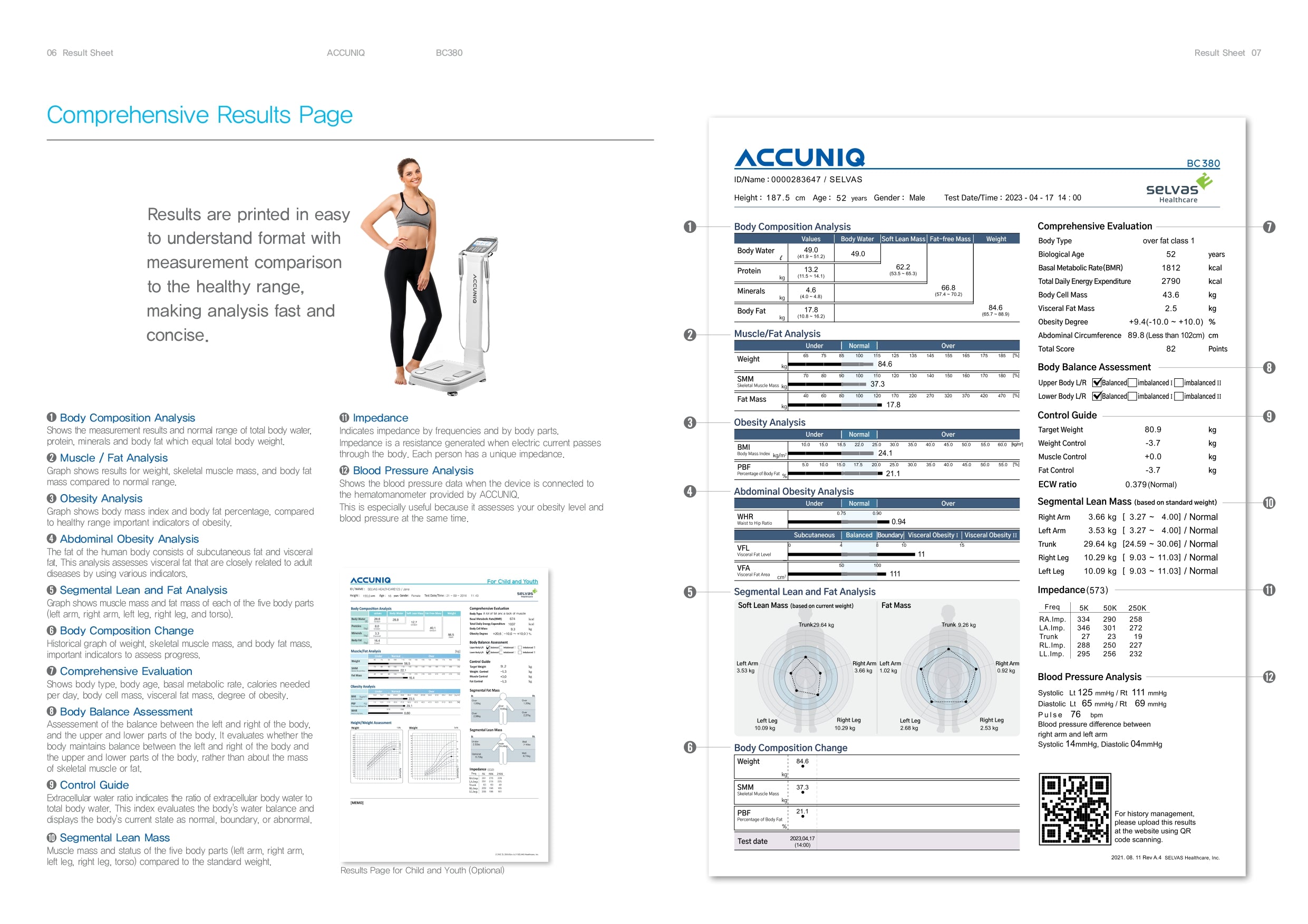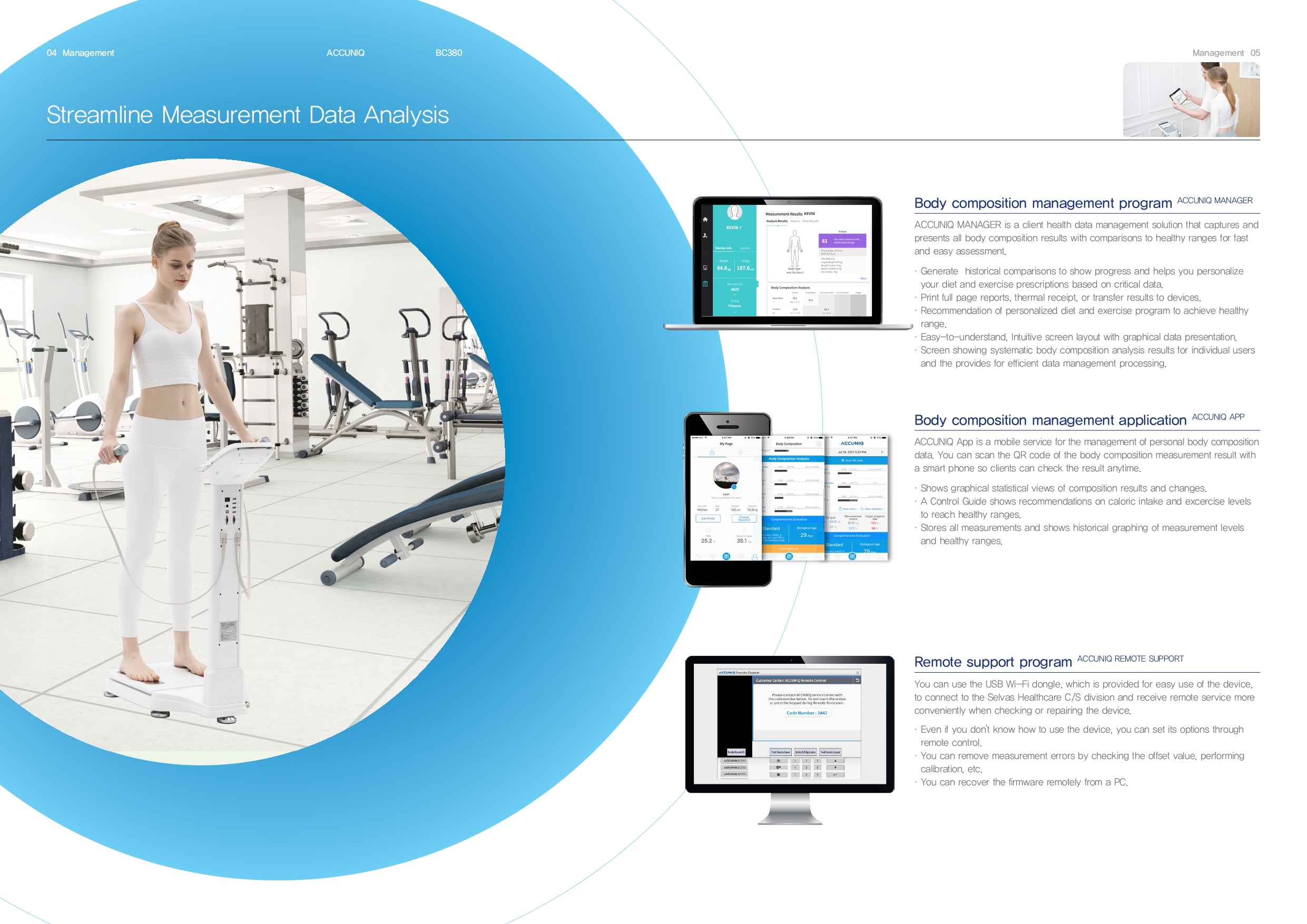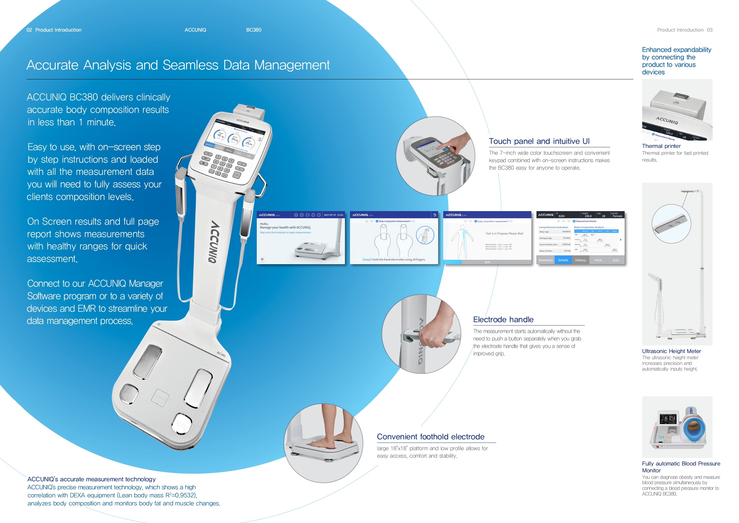 معلومات المنتج: جهاز ACCUNIQ BC380 هو جهاز ذكي لتحليل مكونات الجسم، يُمكّن من تحليلها بدقة من خلال قياس بيانات الجسم. يُستخدم هذا المنتج في مجالات متنوعة، مثل المؤسسات الطبية ومراكز اللياقة البدنية، حيث يُقيّم توازن الماء في الجسم المستهدف من خلال فحص نسبة الماء خارج الخلايا.