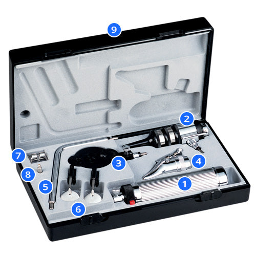 مجموعة تشخيصية محمولة كاملة لعلاج العين والأذن والأنف والحنجرة. يتوفر الاختيار بين مجموعتين من أجهزة econom®: مع منظار أنفي قابل للتوسيع أو مع منظار أنفي بقطر 9 مم (0.35 بوصة). هذه الأدوات متينة وسهلة الاستخدام.