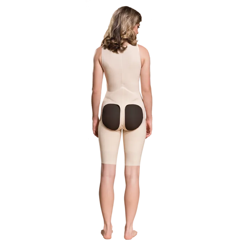 مشد يتميز بأرداف مفتوحة ويأتي مع وسادات إسفنجية عجزية. الوسادات العجزية قابلة للتكديس مما يسمح للأطباء بتعديل حجم الحشوات بالشكل المطلوب