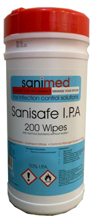مناديل مبللة للاستخدام مرة واحدة، مصممة لتطهير جميع الأسطح بفعالية، ومنع التلوث المتبادل في جميع مرافق الرعاية الصحية. خضعت Sanimed ® SaniSafe ® للاختبار والموافقة على المعايير الأوروبية EN1276/EN14348/EN13727 لفعاليتها القاتلة للبكتيريا في البيئات الطبية، وتتميز بمعدلات قتل فعالة ضد جميع الكائنات الحية الدقيقة التي قد تكون قاتلة، بما في ذلك المكورات العنقودية الذهبية المقاومة للميثيسيلين (MRSA)، وفيروس نقص المناعة البشرية (HIV)، والمطثية العسيرة (C-Difficile)، والمكورات المعوية هيراي (Enterococcus Hirae).